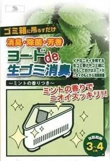 生ゴミ受けやゴミ箱などに吊るしておくだけでヨードがニオイのもとから消臭除菌する生ゴミ消臭剤。